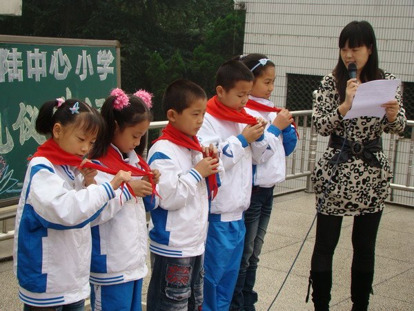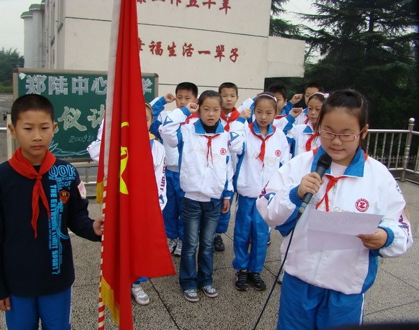 “今天是一个特殊的日子。六十年前的今天,中国共产党委托共青团建立全国统一的少年儿童组织——中国少年儿童队。它就是中国少年先锋队的前身。从此孩子们有了自己的组织……”随着总辅导员深情的讲述,郑陆中心小学庆祝建队六十周年特别队会拉开了序幕。