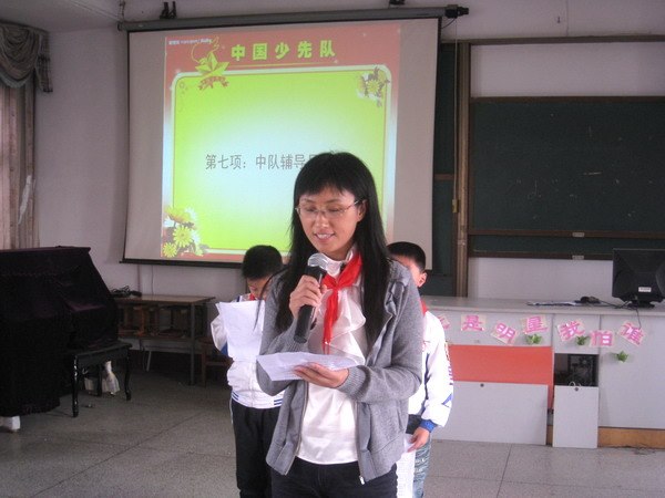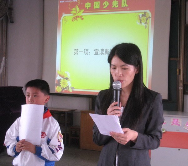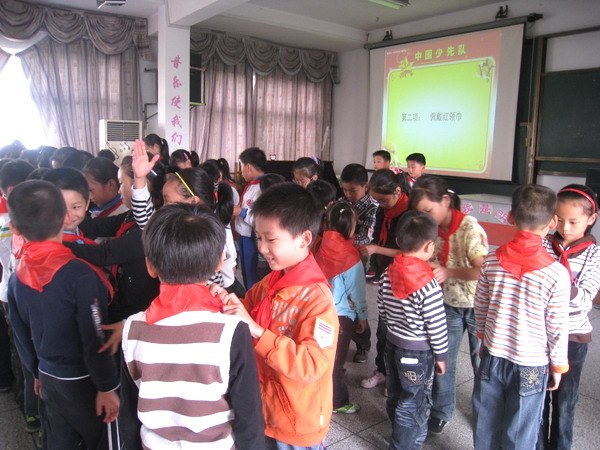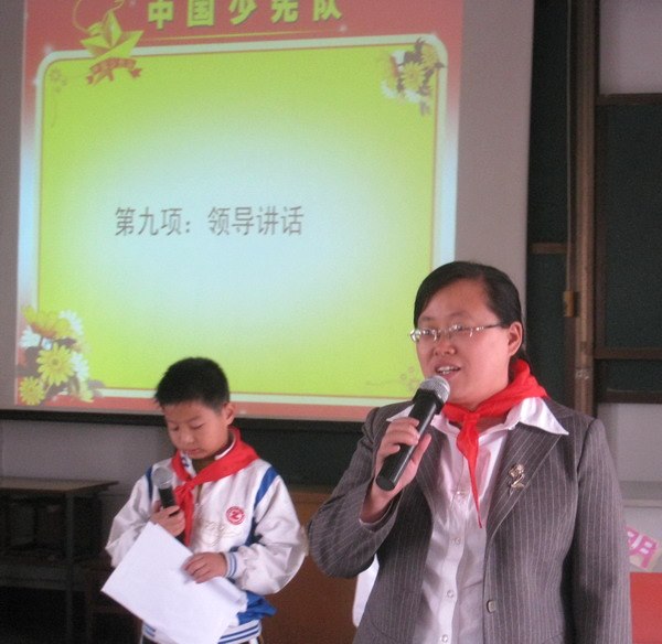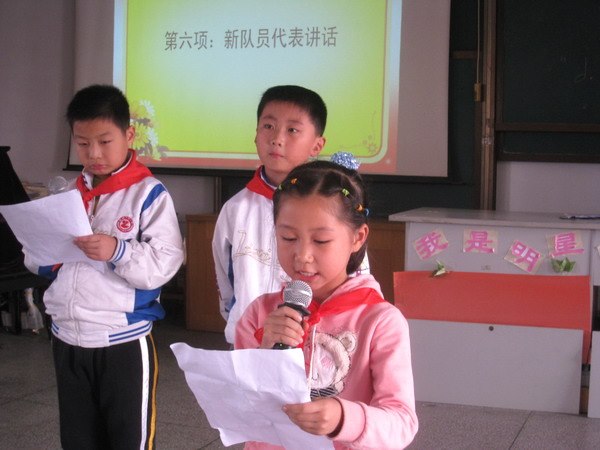 首先少先队大队辅导员宣读了新队员名单,每报出一个名字都会在孩子们中引起小小的雀跃。少先队员代表为新队员们系上了崭新的红领巾,新队员们报以郑重的敬礼。随后稚嫩却响亮的宣誓声和队歌声响彻大厅,在飘扬的队旗下,在鲜艳的红领巾映衬下,一张张小脸自豪而庄严。新队员代表吐露了自己的心声,辅导员代表一样心潮起伏,家长代表欣喜难掩。