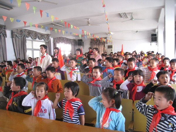 入队仪式在铿锵的鼓乐声中结束了。看着孩子们欢快地步出礼堂,忽然觉得他们长大了许多。(郑小通讯组)