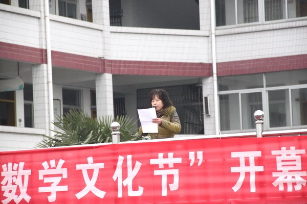 整个仪式由周刚教导主持,他借用国际数学大师陈省身的一句名言:“我们的希望是在21世纪看见中国成为数学大国。”诠释了“人人学有价值的数学,人人都能获得必须的数学,不同的人在数学上得到不同的发展。”这个理念,也是学校举办“首届数学文化节”的动力。他告诉孩子们:数学是体操,让我们思维如电,反应敏捷;数学是空间,让我们想象丰富,蕴藏无数;数学是图形,告诉我们形是数的化身,数是形的灵魂;数学是游戏,七巧板、二十四点,让我们感受着它的无穷奥妙;数学是无限,是一切科学的基础和工具,它博大精深,无限永远。随后,分管数学的