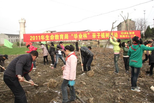 和煦的阳光,湿润的土壤,茁壮的树苗,挥舞着铁锹的队员和家长……没错!这就是郑陆中心小学生命教育周毕业林亲子植树活动的现场。作为2011年生命教育周的压轴大戏,孩子们对于这次活动,投入了太多的热情和心血。