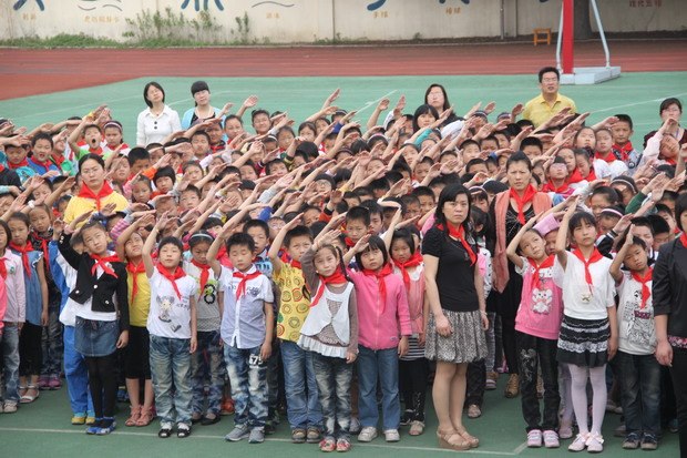 接着全体师生参加了简短却隆重的庆祝“六一”表彰大会。在钱校长热情洋溢的祝福声和殷切希望中,少先队员们举起右拳,响亮而铿锵地回答:时刻准备着!