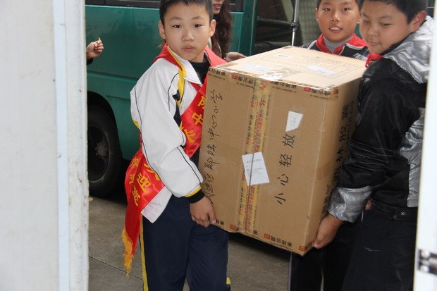 时值初冬,初寒欺人。然而在郑陆中心小学的综合楼大厅,冬衣捐赠活动的小志愿者们却热得满头大汗,忙得不亦乐乎。孩子们在服务中心两位老师的带领下分工合作,有的帮着整理衣物,有的帮着装箱封箱,有的则自告奋勇地把封好的箱子搬上车。