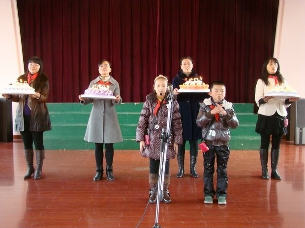 一曲《幸福拍手歌》迅速将现场气氛升温,孩子们尽情地歌唱、摇摆,享受着属于童年的欢乐时光。紧接着的诗朗诵却似乎又让孩子们的眼睛蒙上了轻愁,在朗朗的童音里,孩子们跨过十岁的路口,悄然从童年走向少年。《爱与被爱》令在场的年轻父母动容,更让孩子们自发地走上舞台,向自己的爸爸妈妈表达自己的感恩之情。台上台下,手牵着手,心连着心,一边是初显沧桑的年轻面孔感怀万千,一边是烂漫无邪的纯真笑脸爱意蔓延。孩子们在全体老师们的带领下,大声说出幸福成长宣言;在爸爸妈妈的陪伴下,点亮生日的烛火,许下美好的心愿。