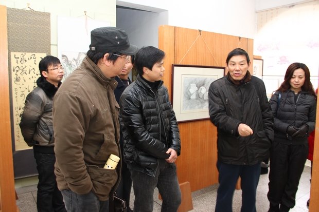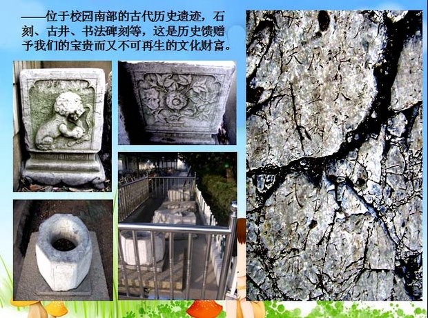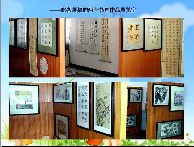 验收组一行首先在钱国云校长的带领下参观了校园环境,大家驻足在校园的古文化遗迹保护区,位于前教学楼南部的古代历史遗迹,有石柱雕花、古井、书法碑刻、古银杏树等,这是历史馈赠予我们的宝贵文化财富。随后验收组又参观了书法长廊,书画展览室。一张张,一幅幅精美的书法作品,是多年来的沉淀与积累,是书法教育教学的集中展示。配备专业展架的两个书画展览室,功能集展览展示、艺术创作为一体,并由两位专职教师担任两个室的领衔人,各具风采,各有特色,这在常武地区也是少有的学校书法工作室模式,多年来是硕果累累。
