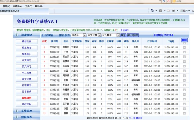 此次比赛的选手,由各班学生在信息技术课上选拔的每班前10名。比赛现场采用了网络打字系统,限用拼音输入法,要求在10分钟内完成指定的文章录入,然后根据学生录入汉字的总字和正确率,由系统自动评分系统给每位选手打分,即时发布比赛成绩。