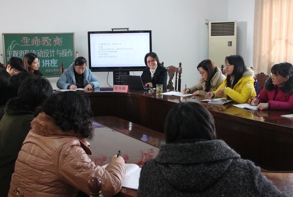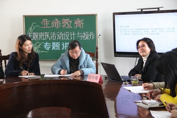“卒然临之而不惊,无故加之而不怒。”张教授以文豪苏轼的名句开篇,对郑小行政会议所提倡的“醉心教育,荣辱不惊”的精神追求表示赞赏。她的“有备而来”,以及个性中特有的热忱和风趣,让郑小的班主任老师们倍感亲切。张教授带领老师们简要回溯了“生命教育”历史起源,并以学者的高度,从广义和狭义阐述了对生命教育所代表的“全人教育”的理解。随即,她从生命教育的课程体系出发,从生存教育、死亡教育、健康教育和环境教育四个方面,逐条介绍了各部分包含的教育内容。张教授更结合今年教育周的相关文件,结合既有案例,从生命教育主题班会的设计和实际操作两个层面,为全体班主任老师做了详尽的指导。老师们时而凝神聆听,时而奋笔疾书,整个讲座在温馨的氛围和会心的互动之中圆满结束。