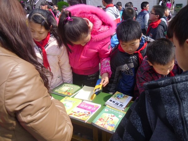 这是生命教育周的又一活动——“爱心字典 点亮人生”爱心义卖活动。全体队员们把自己的书、玩具和学习用品带到学校,明码标价出售。因为是义卖,队员们的购买能力有限,所以一本二、三十元的书最多只卖5元,这使得孩子们的热情空前地高涨,也吸引了老师们的脚步,连校长都忙着穿梭于活动中心,充分感受着孩子们的快乐。本次义卖活动筹得善款6278.5元,这些义卖所得将会用来买字典送给新市民小学的孩子和身边有困难的伙伴。