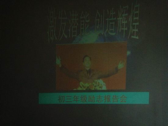 李老师用“灾难终将过去,永不放弃!”结束了精彩的演讲。我们相信,这次活动,必将产生良好的教育效果。初三学生将进一步明确目标,以正确的态度应付艰苦的中考复习,在学生、老师、家长的共同配合下,以理想的成绩来回报老师、父母。