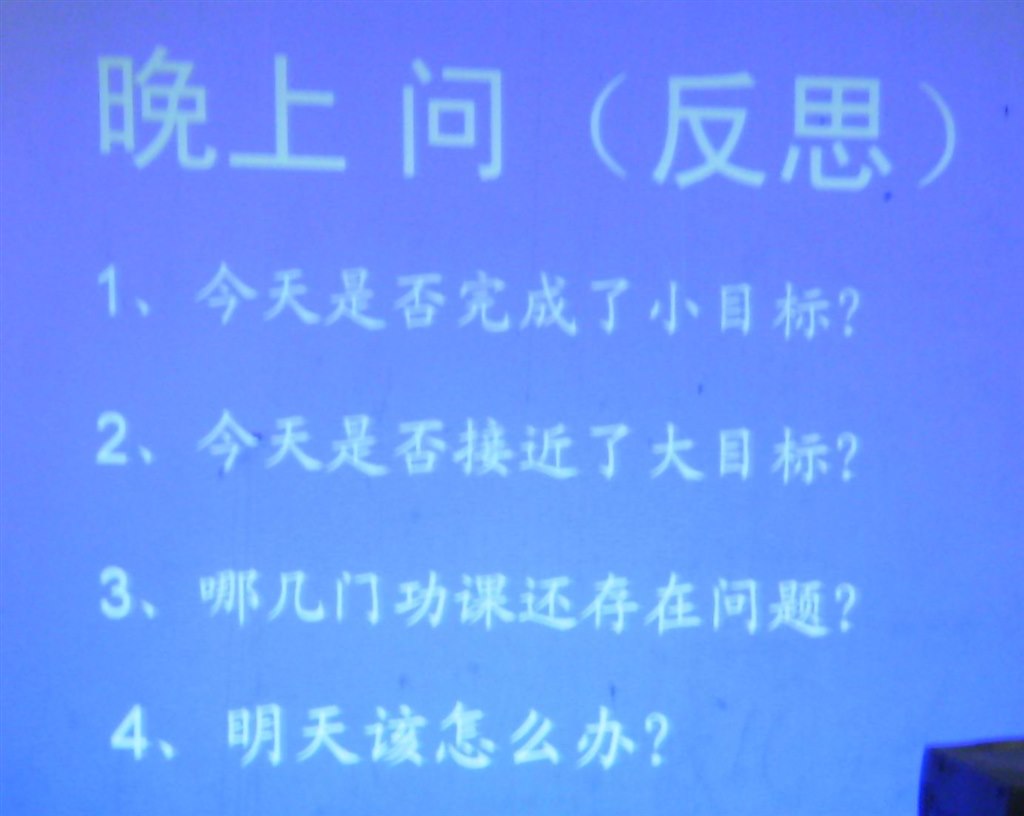 李老师通过自身的成长经历、苏北一些名校学生奋力拼搏取得成功等典型事例,说明了甘于吃苦才能成功;“读书改变命运,知识书写未来”,犹太民族对教育十分重视,美国从小就教育孩子要遵守社会公德,与我国家长普遍存在的家庭教育误区进行对比,说明家长必须改变家庭教育观念和方法,教育学生“人人要有危机意识”,“只有汗水浸透的教育,才是真正的教育”;以美国西点军校对学生的要求“责任—荣誉—家庭(学校、国家)”,教育学生要有责任意识,努力为家庭、学校、国家争取更多的荣誉;用“家有万贯,不如子女成才”、“宁可倾家荡产,也要让孩子成为学者”等教育家长要重视对孩子的教育;用“是你玩游戏,还是游戏在玩你”教育学生正确认识游戏的危害,要远离网吧、游戏厅;用“成功的人—找方法,失败的人—找理由”、“方法总比困难多,只有做不成功的人,没有做不成的事”、“成功的人在行动,失败的人在等待”、“不怕别人瞧不起,只怕自己不争气”、“做完该做的事,才有资格做你想做的事”、“每天进步一点点”等等,鼓励学生树立学习信心,改进学习方法,以良好的态度积极行动,循序渐进,去争取成功;用“假如我不能,我就一定要;当我一定要,我就一定能。全力以赴,永不放弃!”激发学生的潜能,激励学生“把不可能变为可能”;用“中考录取通知书”鼓励学生确立自己的人生目标,时时激励自己不断发奋努力;“每天早上问自己:今天最重要的事是什么?哪门功课要有突破?哪几门课要有进步?如何快乐学习?每天晚上问自己:今天是否完成了小目标?是否接近了大目标?哪门课还存在问题?明天我该怎么办?”,指导学生要不断反思,不断总结,不断确立目标,不断超越目标;“世上只有两种人,一种是嘲笑你的人,一种是期待你的人”,鼓励学生要排除一切不良诱惑,明白老师、家长的苦心,不让期待你的人失望。