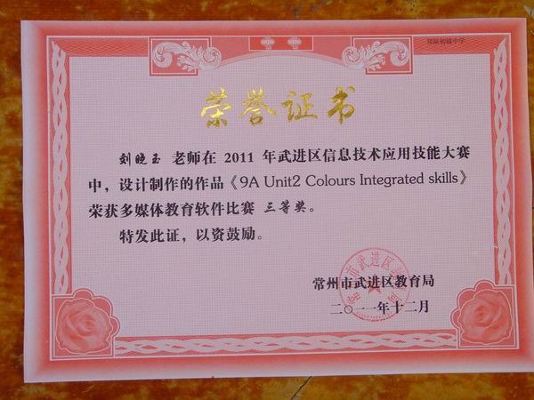 刘晓玉在区信息技术应用大赛中设计的教育软件荣获“三等奖”