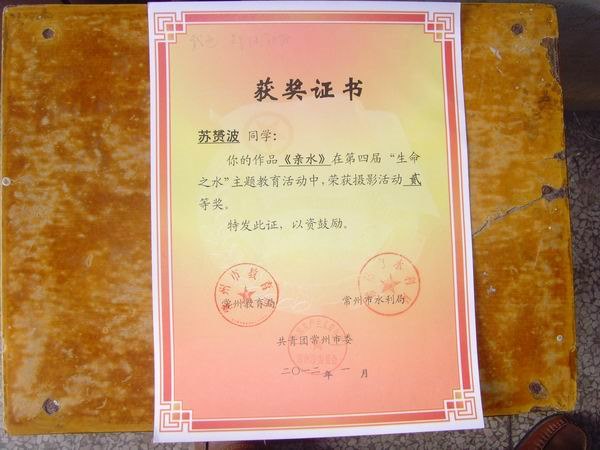 苏赟波市在第四届“生命之水”主题活动中获摄影二等奖