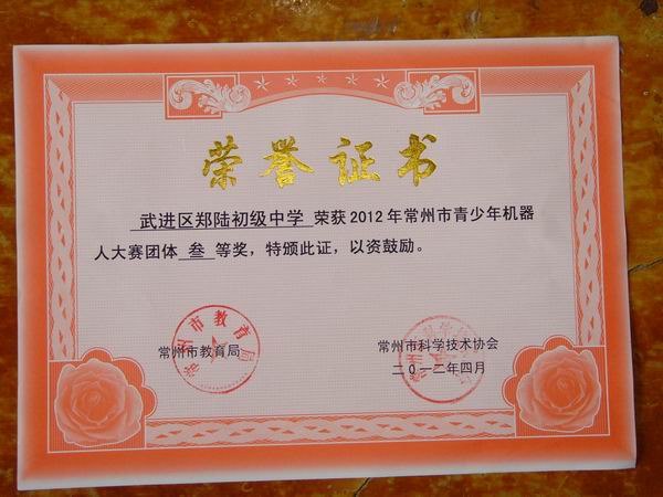 郑陆初级中学荣获常州市青少年机器人大赛团体“三等奖”