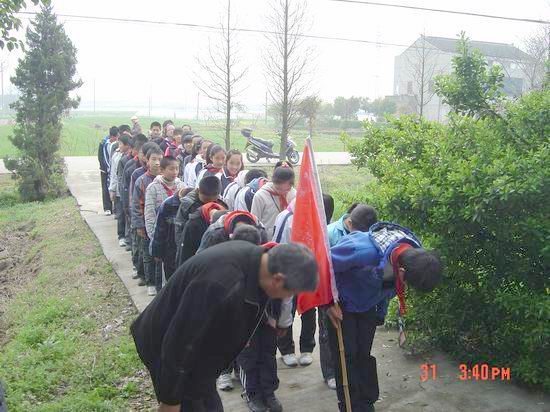 在纪念碑前,首先向烈士纪念碑敬献了花圈。各班为单位向烈士鞠躬致敬,并绕墓一周。
