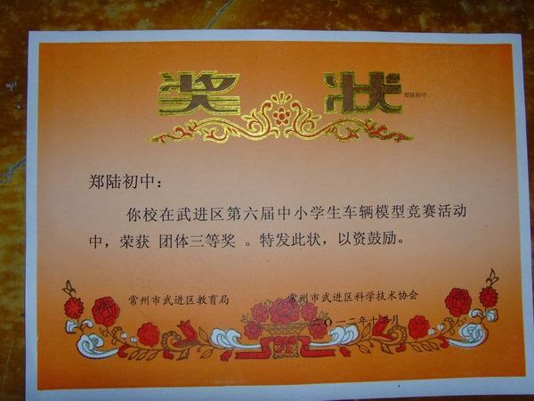 郑陆初中在区第六届车辆模型竞赛中荣获团体三等奖