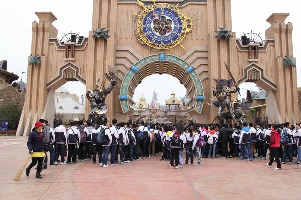 中午十一点,浩浩荡荡的队伍又来到了今天活动的第二站——嬉戏谷。绝大部分同学已经不是第一次来到这座乐园,但这丝毫不影响他们游玩的兴趣。一进入园内,大家就按照事先分好的小队,加入了各类游戏的行列。嬉戏谷不愧是苏锡常地区最大的动漫游戏主题公园:摩尔庄园内的旋转木马、空中大巡逻等让初中学生再一次重温了儿时的时光;撕裂星空、龙行天下等惊险刺激的游戏让人在尖叫连连的同时,进行了一次上天入地的惊险之旅;海底精灵城、天幕幻想等让人在震撼的4D空间享受了一场唯美的影音饕餮……