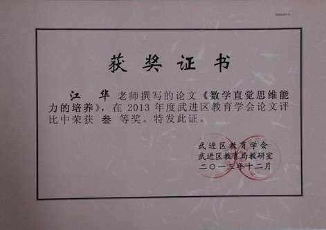 江华老师的论文《数学直觉思维能力的培养》在2013年武进区教育学会论文评比中获三等奖