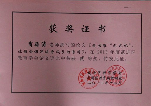 商骏涛老师撰写的论文在2013年度武进区教育学会论文评比中荣获二等奖