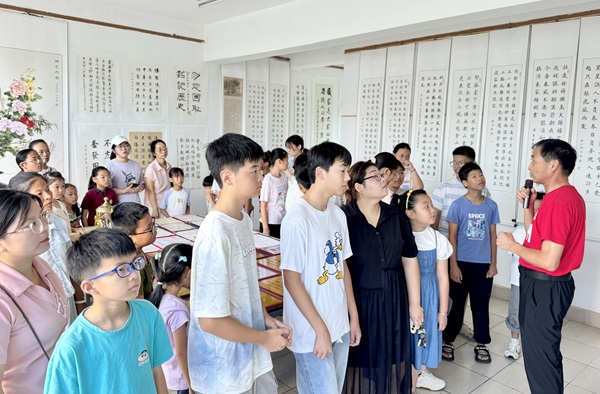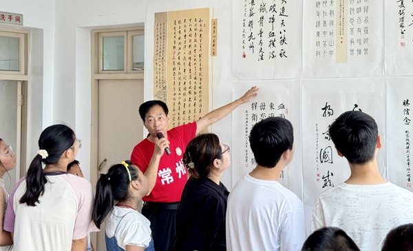 中国老年书画家协会副主席承润明老师带领学生参观了纪念抗战胜利80周年书画展,通过一幅幅饱含历史深情的作品,激发学生的爱国情怀与民族自豪感,引导他们感悟先辈在艰难岁月中不屈不挠、奋勇向前的精神力量。