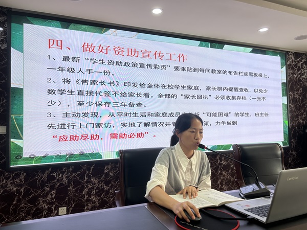 在政策解读环节,高敏洁老师详细解读了2025年秋学期学生资助政策。会议指出,学生资助工作是促进教育公平、保障学子安心求学的重要举措,要求各位班主任准确理解政策内容,确保后续资助工作精准、规范、有序开展,将学校的关怀与政策的温暖切实送达每一位需要帮助的学生。