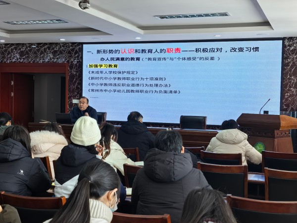 面对新形势下的教育挑战,张林校长再次明确了教育工作者的职责使命,强调要以更高标准加强师德师风建设。全体教师需深入学习《未成年人学校保护规定》《新时代中小学教师职业行为十项准则》等一系列法规文件,严格遵守《常州市中小学幼儿园教师职业行为负面清单》,在学习中提升专业素养与职业操守。会议倡导教师不忘信仰之心、敬畏之心与仁爱之心,争做“四有”好老师,以高尚的师德情操感染学生,以专业的教育能力培育学生。