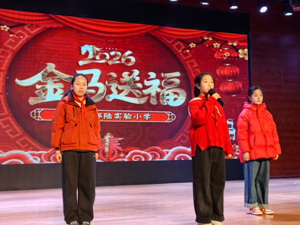 六年级学生代表化身“智慧马、勇敢马、勤奋马、阳光马、友善马、追梦马”,依次为全体师生送上专属马年祝福。“智慧、勇敢、进步、快乐、团结、追梦。”这声声祝福传递郑小少年的美好心愿。