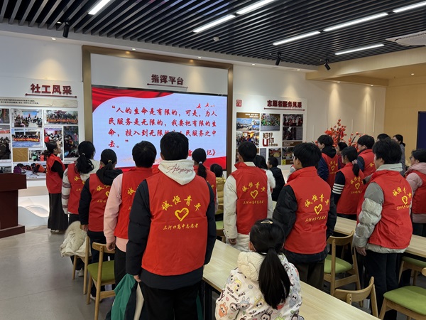 活动在静默省身中拉开序幕。伴随着轻柔的音乐,全体学生闭目静思,围绕“可曾似春风,送暖入人心?可曾化春雨,护绿在家乡?可曾许春愿,立德并传家?”三问反思自我,净化心灵。随后,孩子们齐声高唱《学习雷锋好榜样》,嘹亮的歌声传递出对雷锋精神的崇敬与传承的决心。