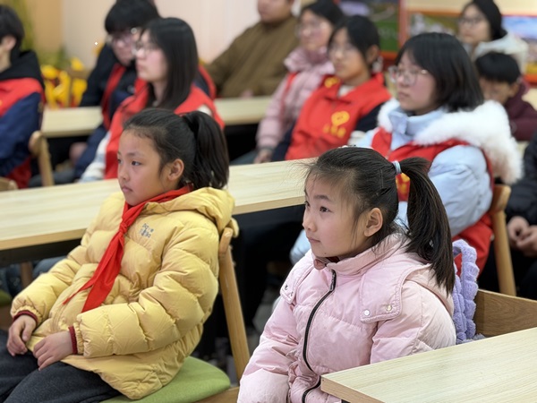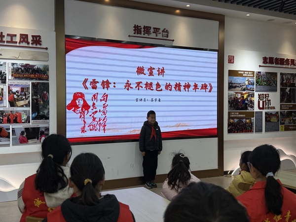 在宣讲环节,微宣讲《雷锋:永不褪色的精神丰碑》与学雷锋公益系列短剧《相遇雷锋·相信爱》第一集《山那边》依次展播,感人的故事深深触动了在场师生。谈感悟环节中,孩子们踊跃发言,用质朴的语言表达对奉献与责任的朴素理解。全体学生还齐声诵读《雷锋日记》经典语录,将雷锋精神的种子根植于心。