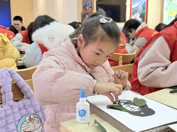 活动最后,孩子们用提前收集的落叶,亲手制作“雷锋剪影树叶相框画”,以落叶为媒、以剪影传情,寓意雷锋精神与绿色理念的交融与传承。