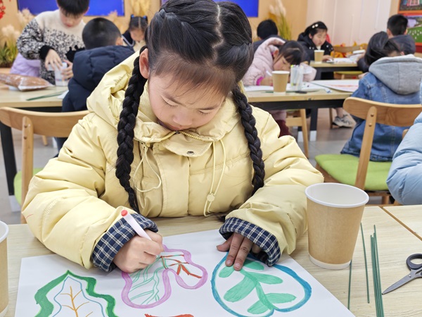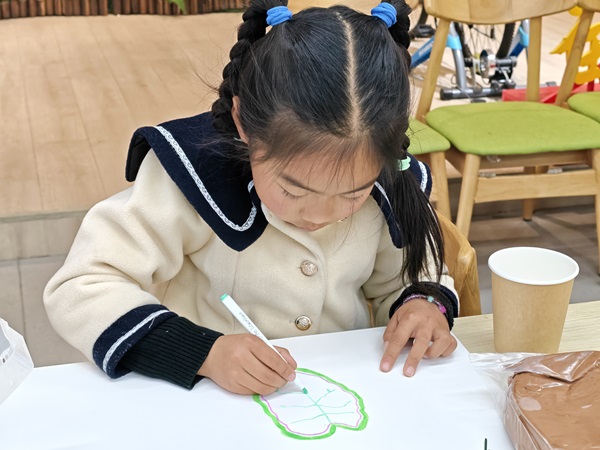 活动的最后,孩子们化身为“小小艺术家”,以画笔为媒,以画板为田。他们细致勾勒出彩芋叶的优雅轮廓,用五彩斑斓的色彩诠释心中的自然之美。在创作过程中,创意的火花与环保理念相互交融,“植绿、护绿、爱绿”的意识随着一笔一画深深扎根于幼小的心田。